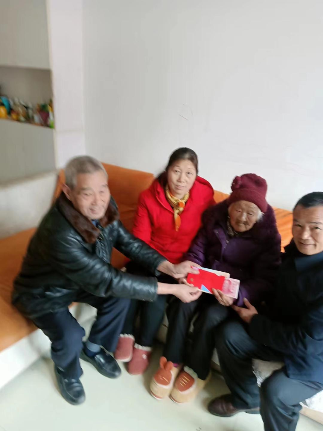 2023年2月28日内江蔣氏宗親會秘書長(cháng)蔣劍、資中(zhōng)縣文(wén)化廣播電(diàn)視和旅遊局副局長(cháng)蔣豔,慰問滿60周歲榮立三等功老兵蔣孝偉、蔣昌懷、蔣明福。