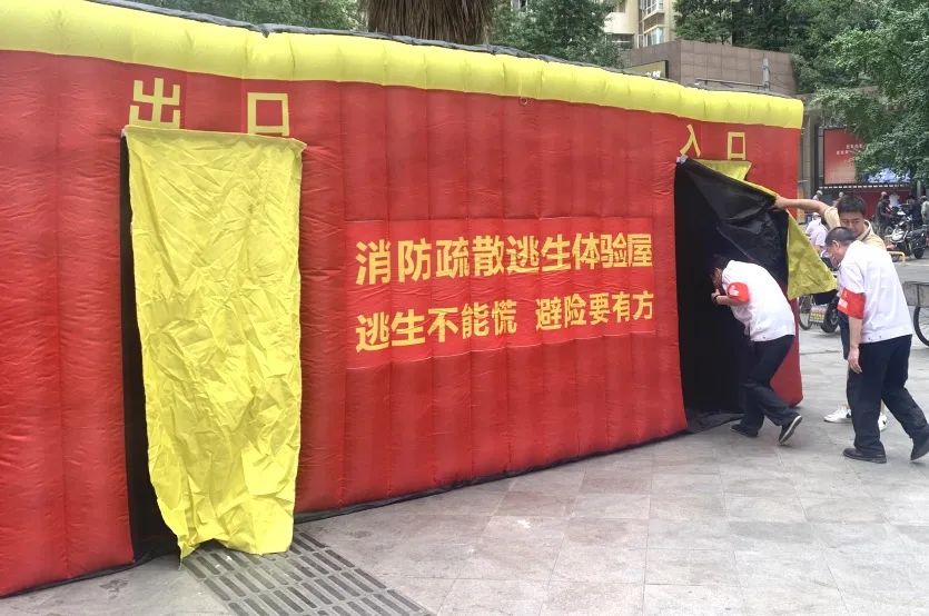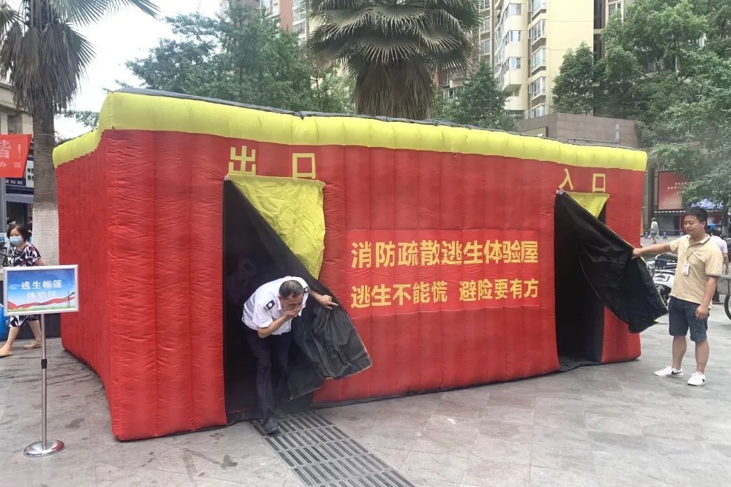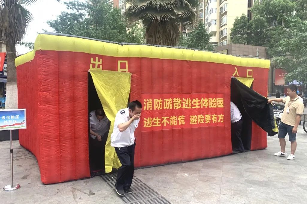 逃生帳篷體(tǐ)驗環節,工(gōng)作(zuò)人員利用(yòng)模拟逃生場景,向居民(mín)演示如何正确逃生,并介紹了應急物(wù)資的準備和儲備方法。