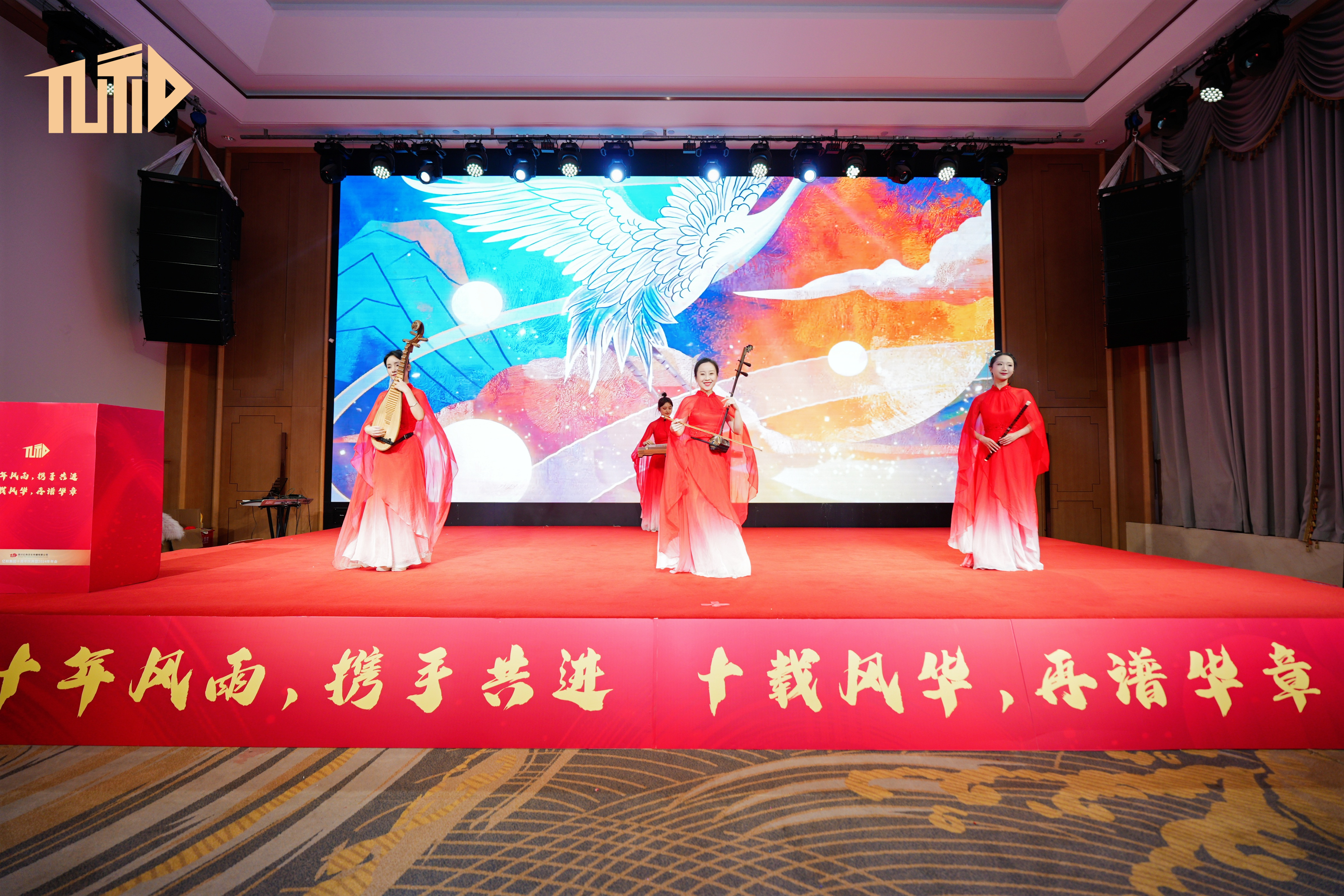 夜幕降臨,晚宴在悠揚的民(mín)樂演奏中(zhōng)拉開帷幕。古筝的清脆、二胡的悠揚,仿佛在訴說着億和這十年的風雨兼程與輝煌成就。