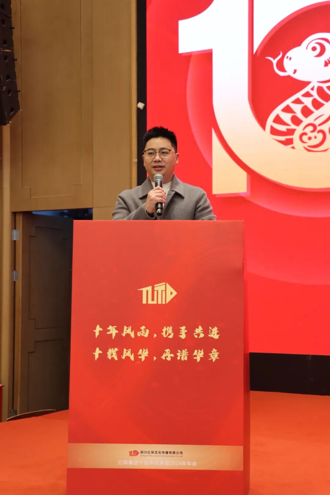 随後,六度人脈俱樂部創始人陳飛;四川蔣氏宗親會副會長(cháng)、成都大英商(shāng)會會長(cháng)蔣平安(ān);遂甯精(jīng)英彙、四川全源塑料制品有(yǒu)限公(gōng)司總經理(lǐ)張天全三位嘉賓依次上台緻辭。一路走來,他(tā)們見證了億和的十年成長(cháng),用(yòng)充滿激情的言語為(wèi)我們帶來了祝福和期許,更為(wèi)億和帶來了一份特别的禮物(wù)。