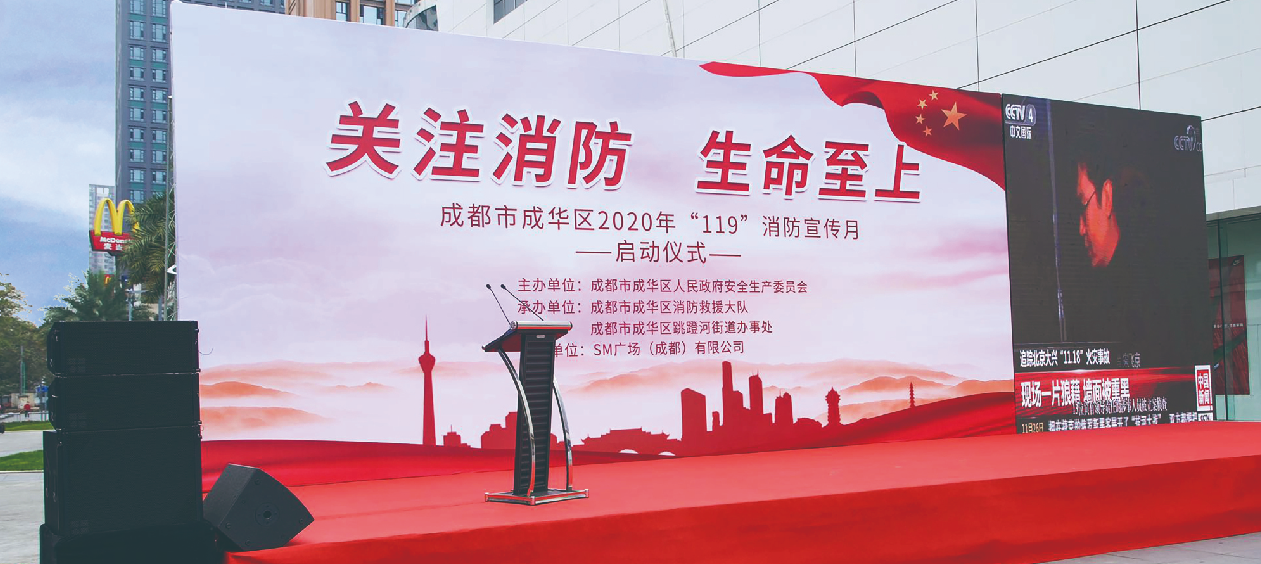 11月6日,成華區(qū)在SM廣場舉行以“關注消防·生命至上”為(wèi)主題的2020年“119”消防宣傳月啓動儀式成華區(qū)政府辦(bàn)機關黨委書記王壯志(zhì)、區(qū)應急管理(lǐ)局局長(cháng)李堅、區(qū)消防救援大隊教導員張仙、跳蹬河街(jiē)道辦(bàn)事處副主任何雷以及全區(qū)各部門、社區(qū)、社會單位代表共300餘人參加了本次啓動儀式。
